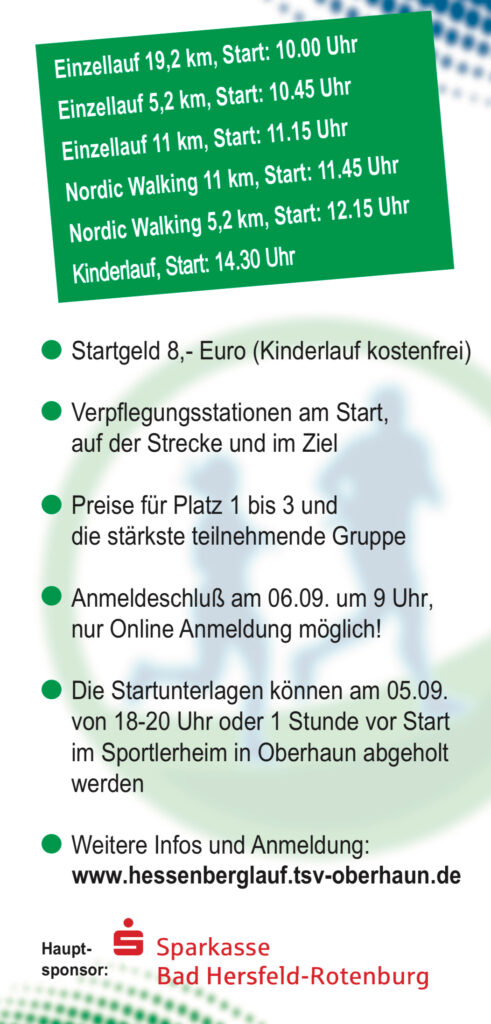 Der TSV Oberhaun engagiert sich durch verschiedene Veranstaltungen in der Gesellschafft. Die Ausrichtung des Weinfestes im Juni oder der Hessenberglauf im September finden im Dorfmittelpunkt direkt am Vereinsheim statt.